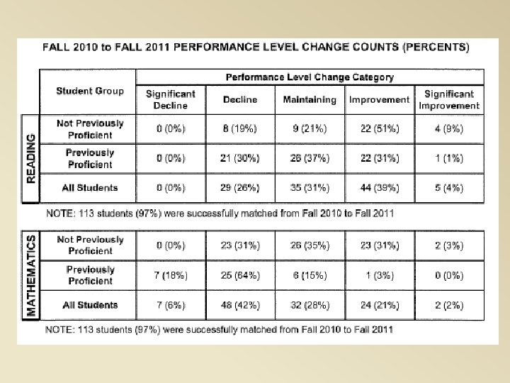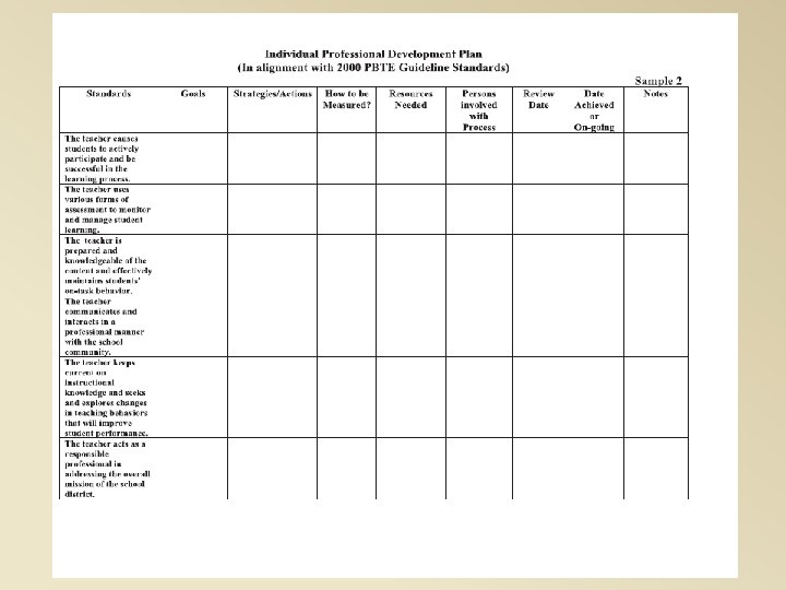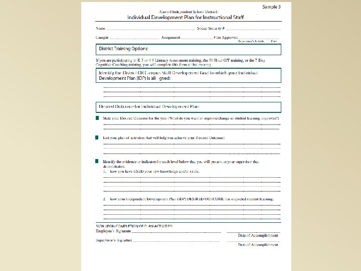 Individual Performance Measures • Instructional Leadership Abilities • Demonstrated Pedagogical Skills • Classroom Management • Rapport with Parents and Other Teachers • Teacher Attendance/Disciplinary Record • Evidence of Student Growth