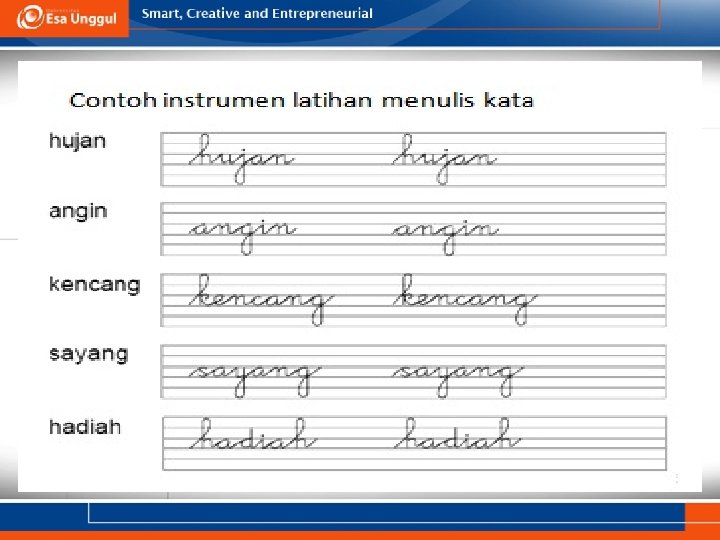KEMAMPUAN AKHIR YANG DIHARAPKAN Mahasiswa mampu menjelaskan contoh-contoh dalam kegiatan menulis permulaan.