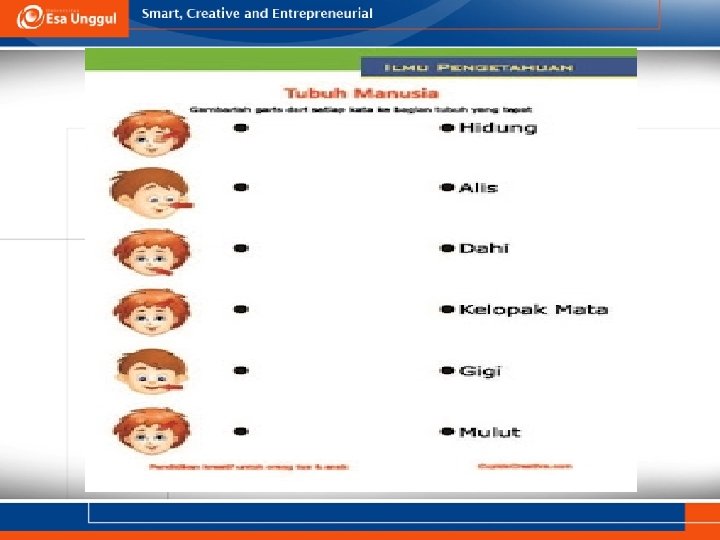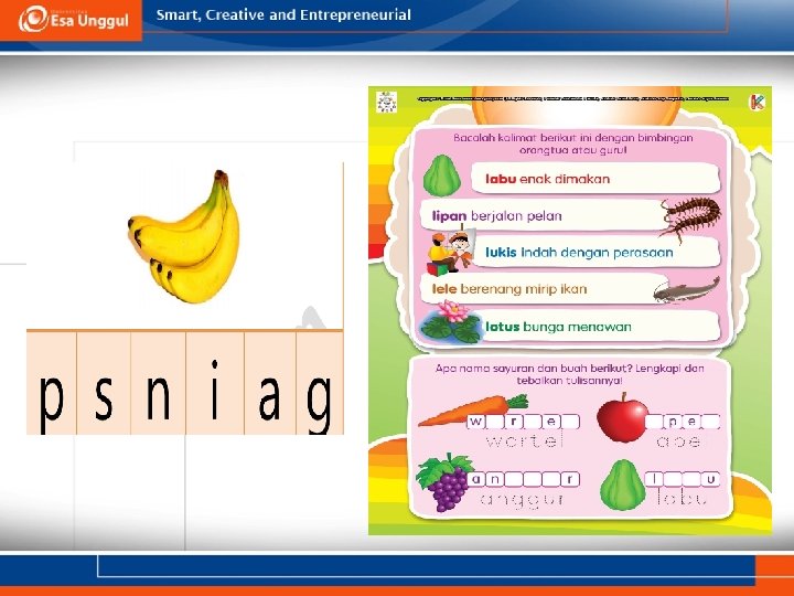 LANGKAH-LANGKAH PEMBELAJARAN MELENGKAPI • Melengkapi dengan huruf • Melengkapi dengan suku kata • Melengkapi dengan kata