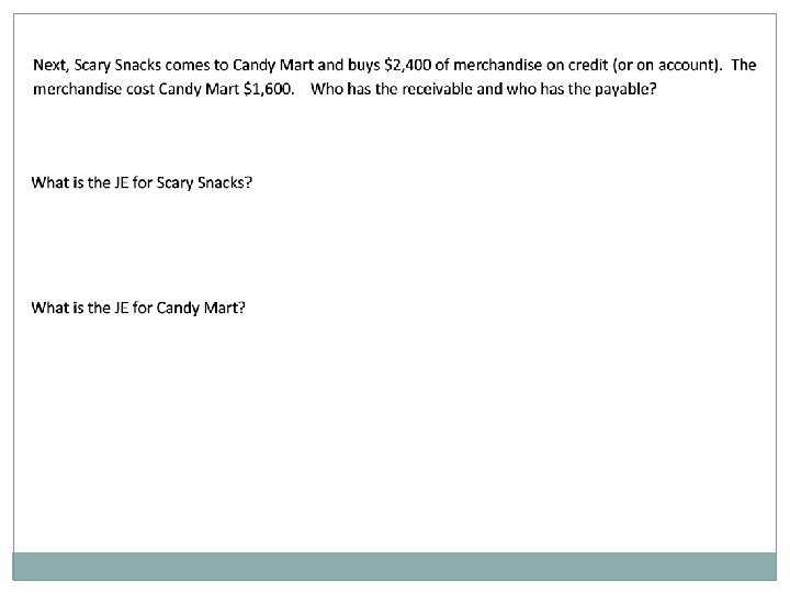Merchandising Companies This chapter is about a new type of company which sells merchandise and not services. We will learn about this type of company by looking at various transactions for a seller and purchaser of merchandise. Merchandising companies are either 1) wholesalers who buy from manufacturers and sell to retailers or 2) retailers who buy from either manufacturers or wholesalers and sell to the final customer. We will use a local retail company named “Candy Mart” which purchases from the large candy manufacturers and sells to local candy stores for Halloween baskets. The store’s clients are Happy Halloween, Scary Snacks, and Gruesome Goodies.