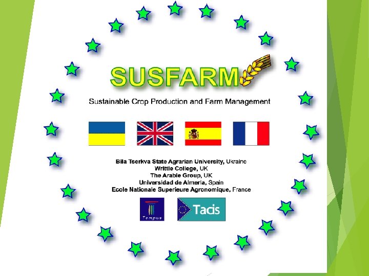 Ministry of Agrarian Policy of Ukraine Bila Tserkva State Agrarian University Justus-Liebig-University Giessen University of Essex Opening of the First Training Course Bila Tserkva, 22. August 2005 Project Consortium: Ukraine, Germany, United Kingdom