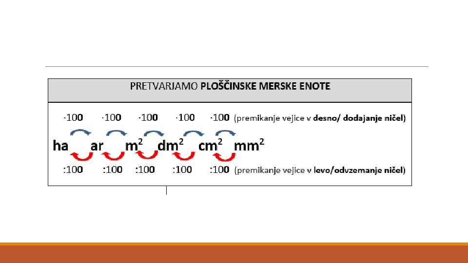 PRETVARJAJ PLOŠČINO 4 m 2 = _400_dm 2 7 cm 2 = ___700___mm 2 400 m 2 = __4___ar 12 m 2 = __1200__dm 2 34 cm 2 = __3400___mm 2 800 dm 2 = __8____m 2 7 dm 2 = ____700__cm 2 4 ar = ___40000___ m 2 400 cm 2 = ___4___dm 2 14 dm 2 = __1400___cm 2 50 arov = _500000__m 2 700 mm 2 = ___7__cm 2
