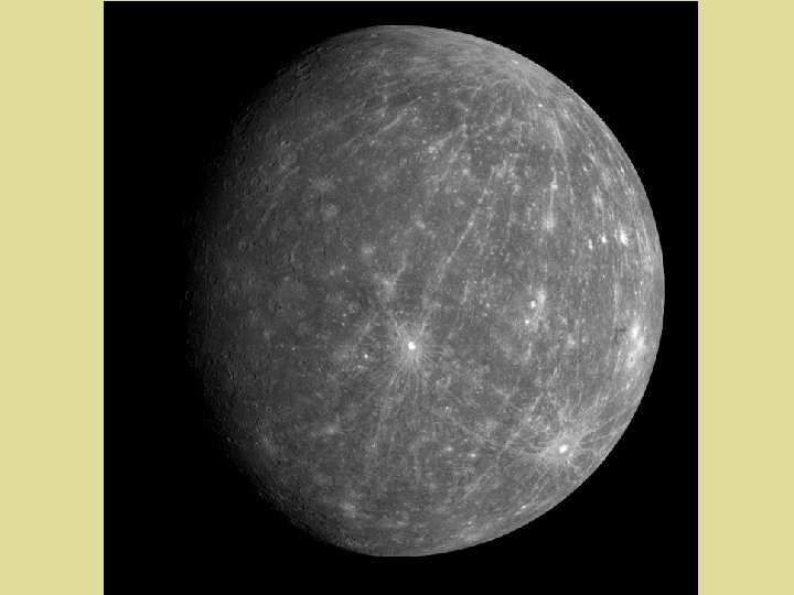 Üldandmed • Orbiidi keskmine kaugus Päiksest on 57 910 000 km • Diameeter on 4 880 km • Mass on 3. 30*10^23 kg • Temperatuur muutub 90 K kuni 700 K • Pindala on 75 miljonit ruutkilomeetrit • Tiirlemisperiood on 88 päeva • Pöörlemisperiood on 59 päeva • Keskmine tihedus on 5, 43 g/cm³ • Merkuur koosneb umbes 60– 70% ulatuses metallidest ja 30% ulatuses silikaatidest • Magnetvälja tugevus Merkuuri ekvaatoril on umbes 300 n. T • Merkuuril on kõige ekstsentrilisem orbiit