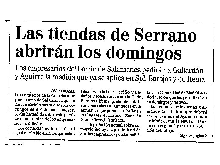 1. Breve historia • 2. 000. El posterior Real Decreto-Ley 6/2000, de 23 de junio, amplió el régimen transitorio durante cuatro años más. La discusión sobre la libertad de horarios se pasó del 1 de enero de 2001 al 1 de enero de 2005. El Real Decreto-ley estableció una nueva regulación con un mínimo de 90 horas de apertura semanales y un número creciente de domingos y festivos desde los 9 en 2. 001 hasta llegar a 12 en 2004. Además extendió la libertad de horarios a los establecimientos de menos de 300 m 2 y estableció una exención en zonas turísticas. • 2. 004. Por último se dictó la Ley 1/2004, de 21 de diciembre, de Horarios Comerciales. El artículo 5 señala para los grandes establecimientos restricciones horarias un retroceso en la amplitud horaria semanal hasta un total de 72 horas, y establece el número mínimo de domingos y festivos autorizados para el comercio en 8.