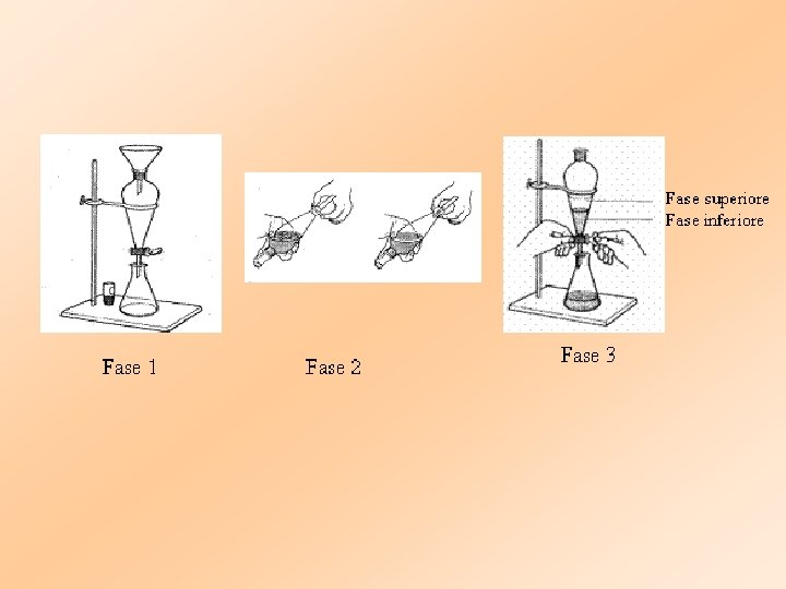 L’imbuto separatore Quando una sostanza è posta a contatto con due suoi solventi non miscibili tra loro, si ripartisce in misura tale che per una data temperatura il rapporto tra le concentrazioni nelle due soluzioni sia costante. In particolare, si definisce coefficiente di ripartizione, R, il rapporto: R = liquido estrattore / liquido da cui si effettua l'estrazione