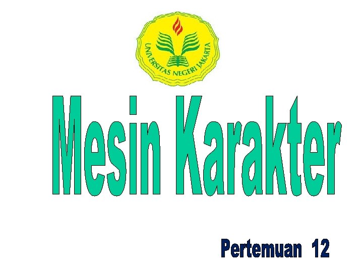 Mesin Karakter • Mesin karakter adalah mesin abstrak yang terdiri dari: – Pita berisi deret karakter, yang diakhiri dengan ‘. ’ (titik), pita yang hanya berisi ‘. ’ disebut sebagai pita kosong – Tombol START, ADV – Sebuah lampu EOP (End Of Pita) – “Jendela” yang ukurannya sebesar satu karakter. – karakter yang sedang pada jendela dinamakan CC (Current Character)