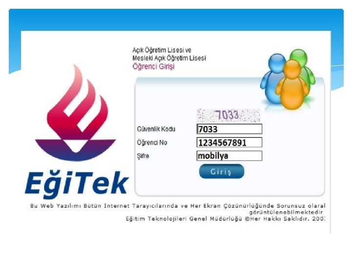 Şifremi Unuttum, Ne yapmalıyım? İnegöl Mesleki ve Teknik Lisesi müdür yardımcısına (yani ben) başvurarak şifrenizi öğrenebilirsiniz. Şifrenizi hiç kimseye göstermeyiniz ve söylemeyiniz. Sizin adınıza başkalarınca yapılan her türlü işlemlerden ve yanlışlıktan sizin sorumlu olduğunuzu unutmayınız. Öğrenci kimlik kartlarını okuldan alarak fotoğraf yapıştırın ve bilgilerinizi yazarak ilgili müdür yardımcısına onaylatın. Kimlik kartları ücretsizdir. Kimlik kartları bir kez verilir.