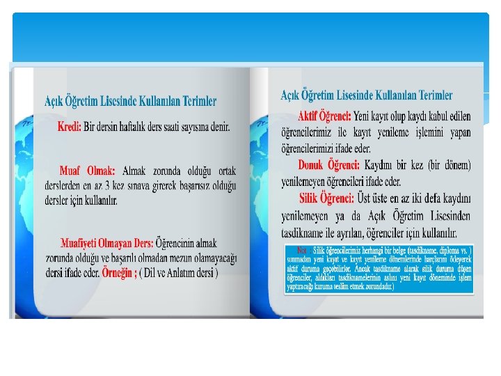 ALAN DERSLERİ Kayıtlı oldukları alana göre tanımlanmış meslek derslerini ifade eder, öğrenciler bu dersleri yüze eğitimle almak zorundadırlar. 4 yıllık sistemde alınması gereken alan dersleri www. maol. meb. gov. tr adresinde yayınlanmaktadır