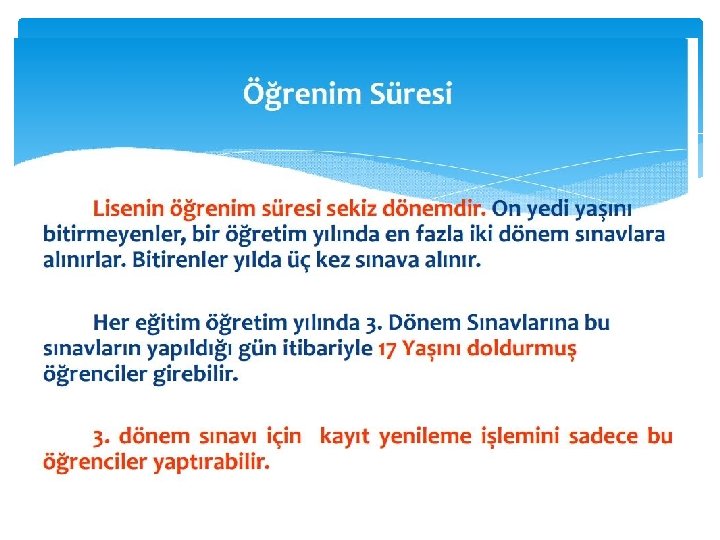 ÖĞRETİM SİSTEMİ Lisede, ders geçme ve kredi sistemi uygulanır. Programlar, ortak, alan ve seçmeli derslerden; öğretim yılı ise birbirinden bağımsız dönemlerden oluşur. Öğrenciler sınavında başarılı oldukları dersin kredisini kazanırlar.