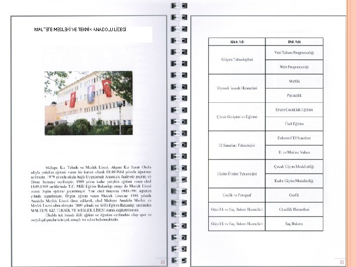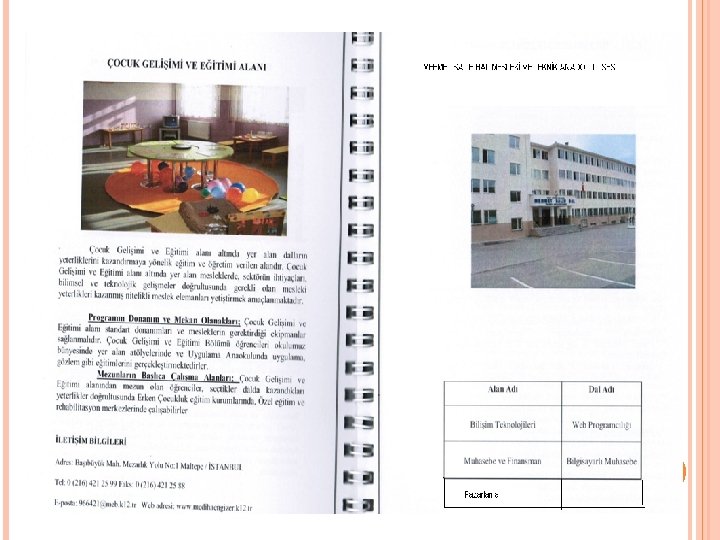 ALAN: ÇOCUK GELİŞİMİ VE EĞİTİMİ DAL: ERKEN ÇOCUKLUK EĞİTİMİ VE ÖZEL EĞİTİM ALAN: YİYECEK VE İÇECEK HİZMETLERİ DAL: MUTFAK VE PASTACILIK ALAN: KİMYA TEKNOLOJİLERİ DAL : KİMYA LABARATUARI