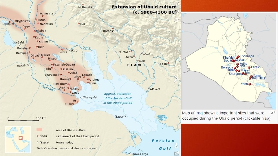 Ubaid Culture • Eventually, these people developed a complex society with rules and organization, leaders (one person in each community served as village chief). • They built larger homes and temples. • They are well known for their painted pottery. • They construct boats to carry their pottery and other trade goods to other villages. • By 4, 000 B. C. they were an advanced society, this is the foundation of Mesopotamia.