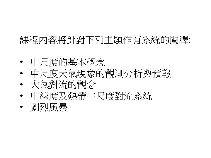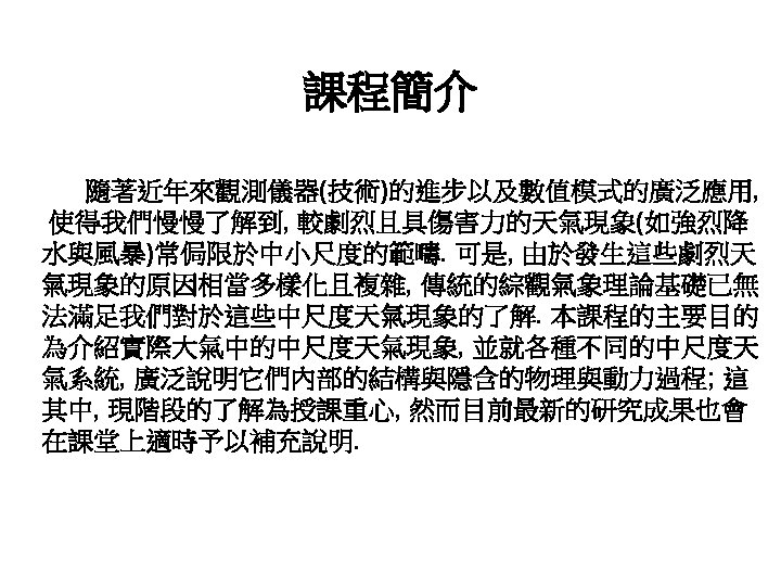 中尺度氣象學 (Mesoscale Meteorology) 授課老師: 游政谷 Mesoscale(1)