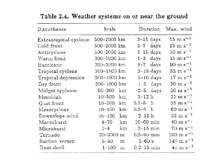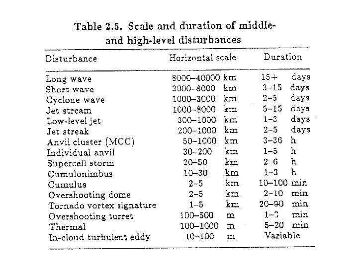Orlanski (1975): Macro > 2000 km (大尺度) Meso 200 -2000 km (中尺度) Meso 20 -200 km (中尺度) Meso 2 -20 km (中尺度) Micro < 2 km (小尺度)