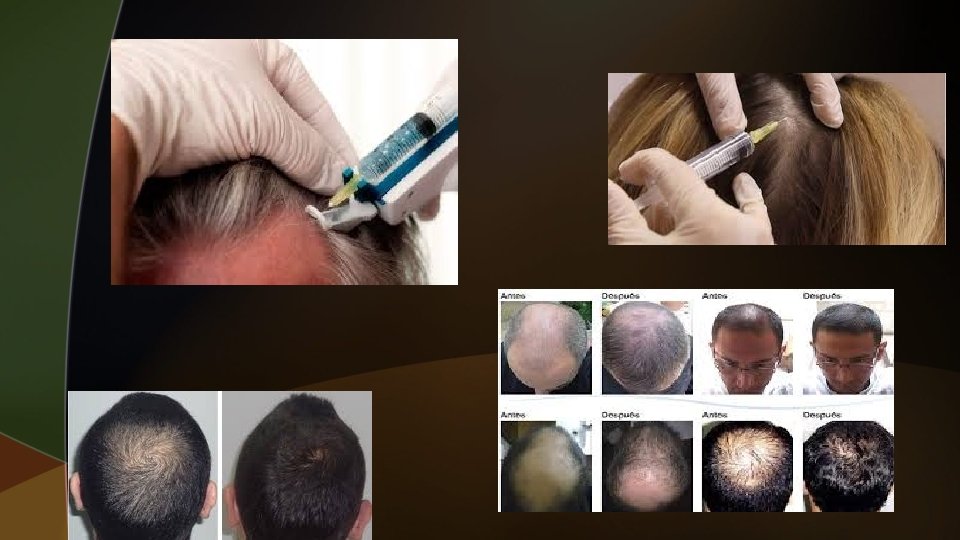 ALOPECÍAS u. Es la disminución o ausencia de pelo en áreas donde normalmente existe para la edad, sexo y raza. u. TRATAMIENTO MESOTERÁPICO DE LAS ALOPECIAS: § Alopecía androgenética: finasteride, flutamida, 17 beta estradiol. § Alopecias en general: minoxidil, vitaminas del complejo B, biotina, pantenol.