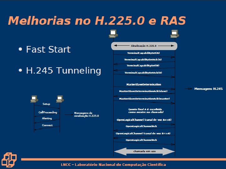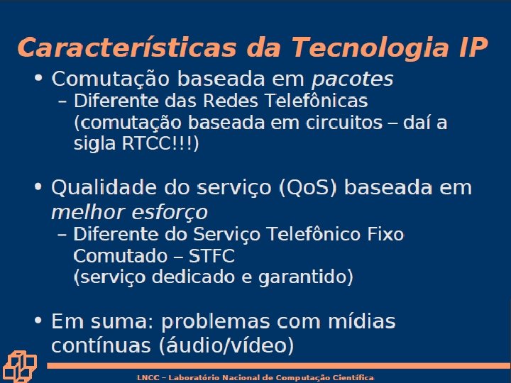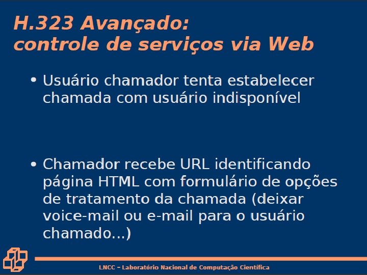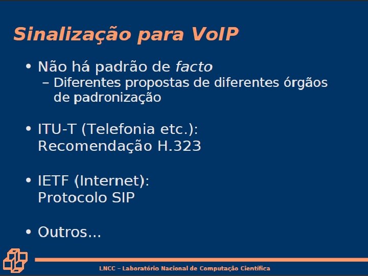 Comparação com o H. 323 • H. 323 é um outro protocolo de sinalização para tempo-real, interativo • H. 323 é um conjunto integrado de protocolos para conferência multimídia: sinalização, registro, controle de admissão, transporte e codecs. • SIP é um único componente. Trabalha com RTP, mas não é obrigatório. Pode ser combinado com outros protocolos e serviços. 7: Redes Multimídia • H. 323 vem do ITU (telefonia). • SIP vem do IETF: Empresta muitos dos seus conceitos do HTTP. – SIP tem um sabor Web, enquanto que o H. 323 tem um sabor da telefonia. • SIP usa o princípio KISS: Keep it simple, stupid. 7 a-40