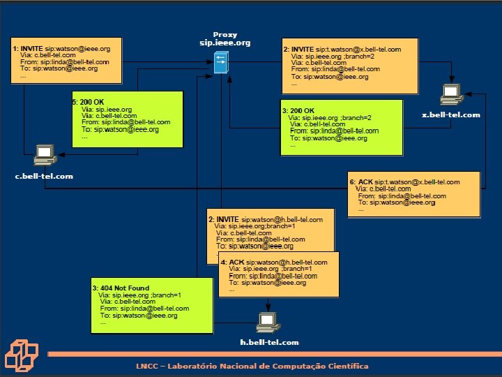 Exemplo Chamador jim@umass. edu inicia uma chamada para keith@upenn. edu (1) Jim envia mensagem INVITE para o proxy SIP da UMass. (2) Proxy encaminha o pedido para o servidor de registro da UPenn. (3) O servidor da UPenn retorna resposta de redirecionamento, indicando que deve tentar keith@eurecom. fr (4) O proxy da UMass envia INVITE para o registro da eurecom. (5) Registro da eurecom encaminha o INVITE para 197. 87. 54. 21, que está rodando o cliente SIP de Keith. (6 -8) retorno da resposta SIP. (9) mídia enviada diretamente entre clientes. Nota: mensagens ack do SIP, não apresentadas. 7: Redes Multimídia 7 a-28