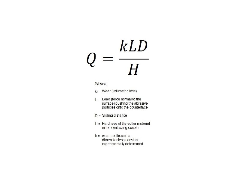 Introduction to Wear • Plastic deformation at the interface often leads to wear, i. e. , deformation induced wear. • Wear can also be caused by chemical processes. • There are many different kinds of wear mechanisms The process leading to loss of material is known as "wear“ Types of wear Adhesive wear Abrasive wear Surface fatigue Fretting wear