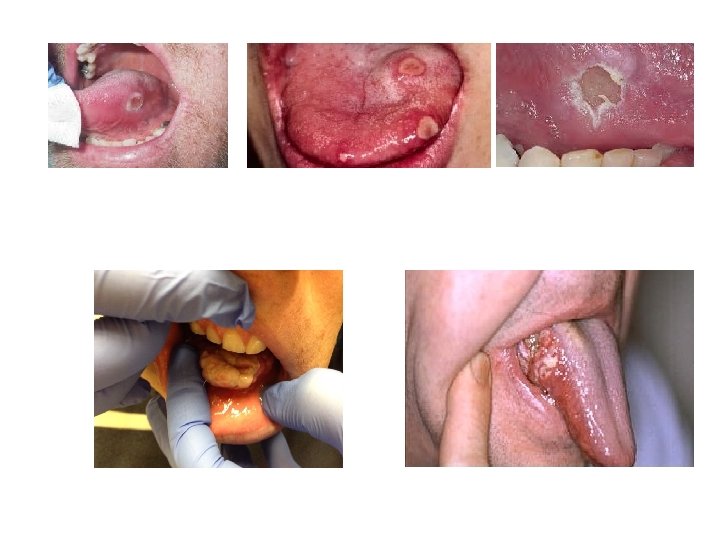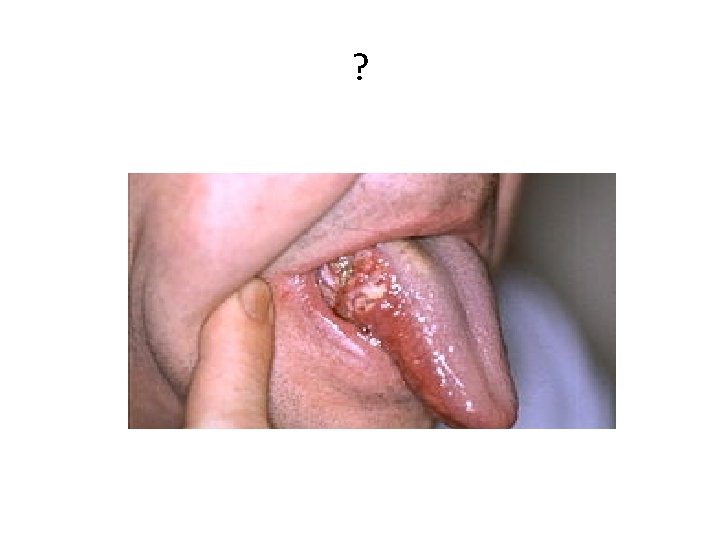Plaveiselcelcarcinoom • 80% van de mondkanker zijn plaveiselcelcarcinomen • 33% van de mondholtecarcinomen op de tong gelokaliseerd • Zijrand van de mobiele tong • Tabak • Alcohol