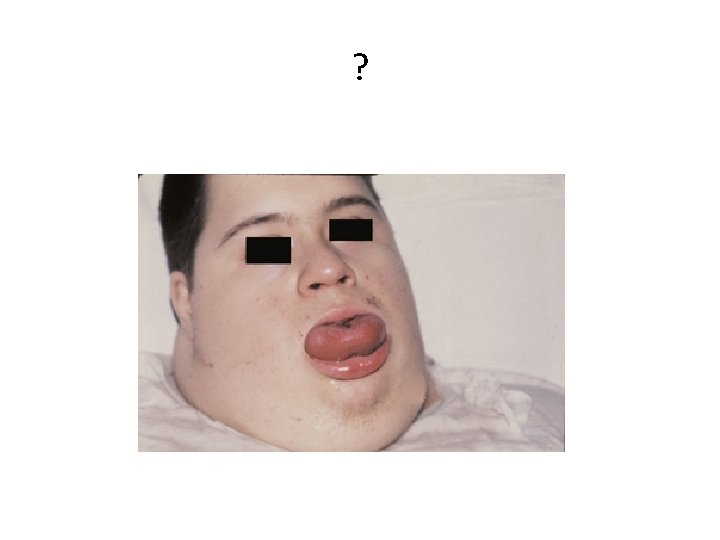 Macroglossie • Verworven ØLipomatose ØAmyloïdose ØIntramusculair tongcarcinoom • Aangeboren ØDown syndroom ØBeckwith-Wiedeman syndroom