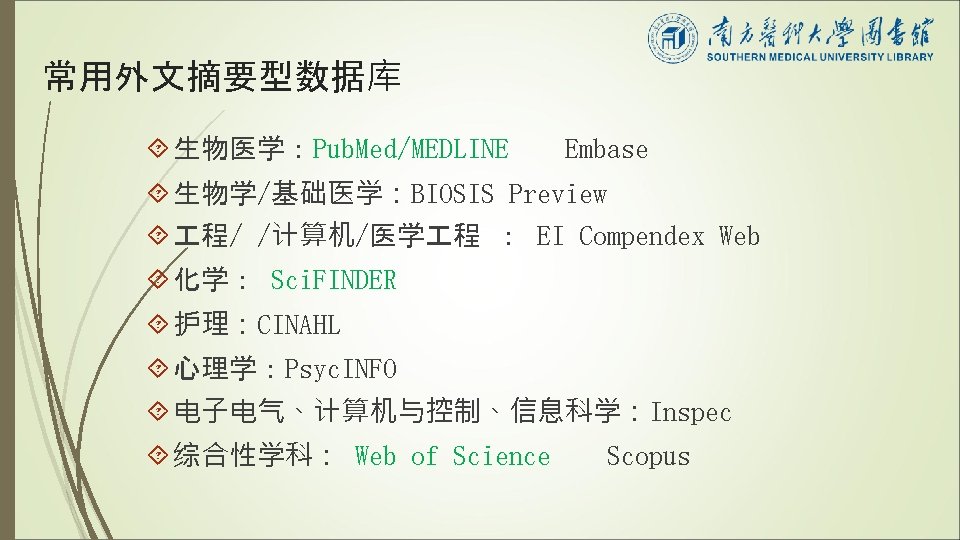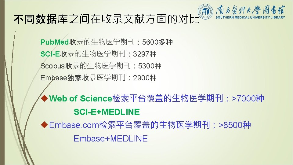 Meta分析检索基本数据库 Pub. Med/MEDLINE EMbase Cochrane Library