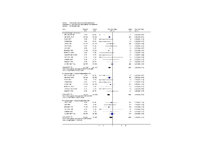 Random Effects • Primary value of M-A is in search for predictors of between-study heterogeneity • Random-effects summary is last resort only when predictors or causes of between-study heterogeneity cannot be identified • Random-effects can conceal fact that summary estimate or fitted model is poor summary of the data Sander Greenland. Am J Epidemiol 1994; 140; 290 -6.
