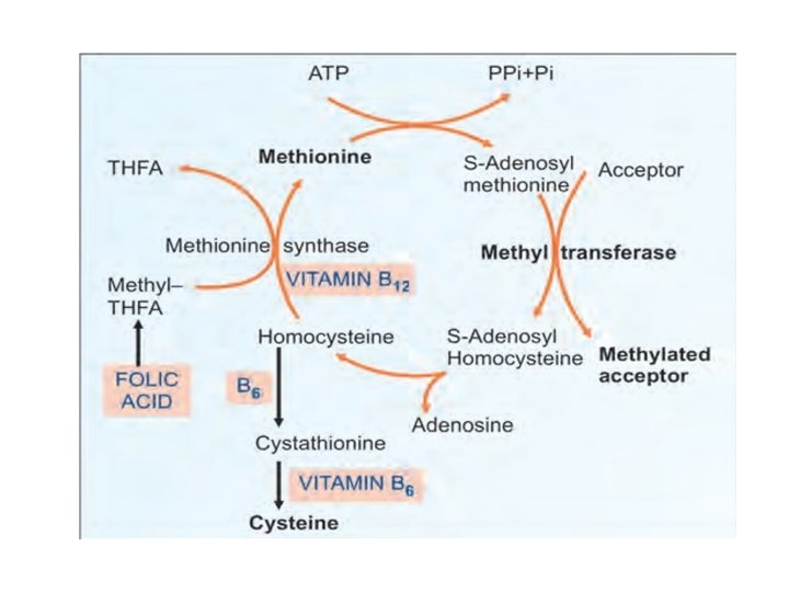 Methyl groups are originally derived from the one carbon pool. The methyl-THFA can transfer the methyl group to homocysteine. Vitamin B 12 is the co-enzyme for the reaction. This would account for the deficiency of folic acid associated with B 12 deficiency (folate trap). SAM is the methyl donor for all the transmethylation reaction.