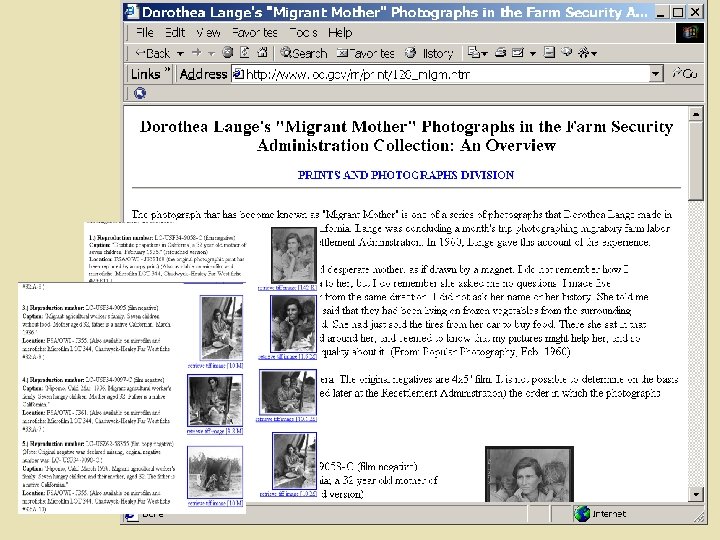 Collection example Dorothea Lange's "Migrant Mother" Photographs in the Farm Security Administration Collection http: //www. loc. gov/rr/print/128_migm. html ( next slide)