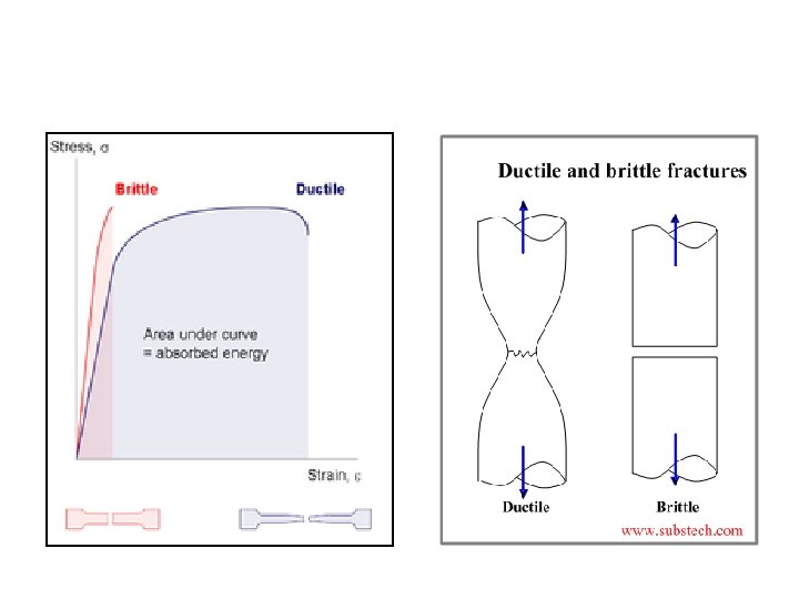 Depending on the ability of material to undergo plastic deformation before the fracture two fracture modes can be defined - ductile or brittle. • Ductile fracture - most metals (not too cold): – Extensive plastic deformation ahead of crack. – Crack is “stable”: resists further extension unless applied stress is increased.