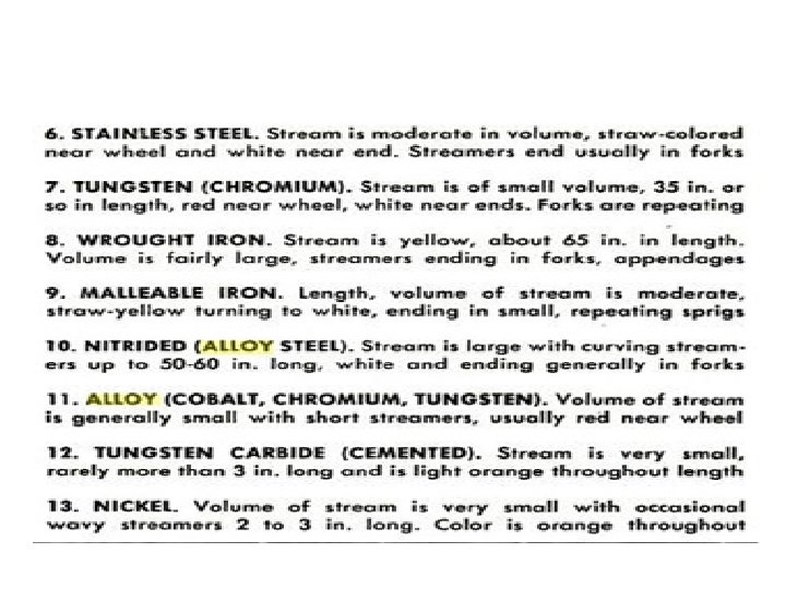 SPARK TEST • Spark testing is a method of determining the general classification of ferrous materials. • It is a reliable and inexpensive method to identify the metals and alloys. • Spark testing most often is used in tool rooms, machine shops, heat treating shops, and foundries.