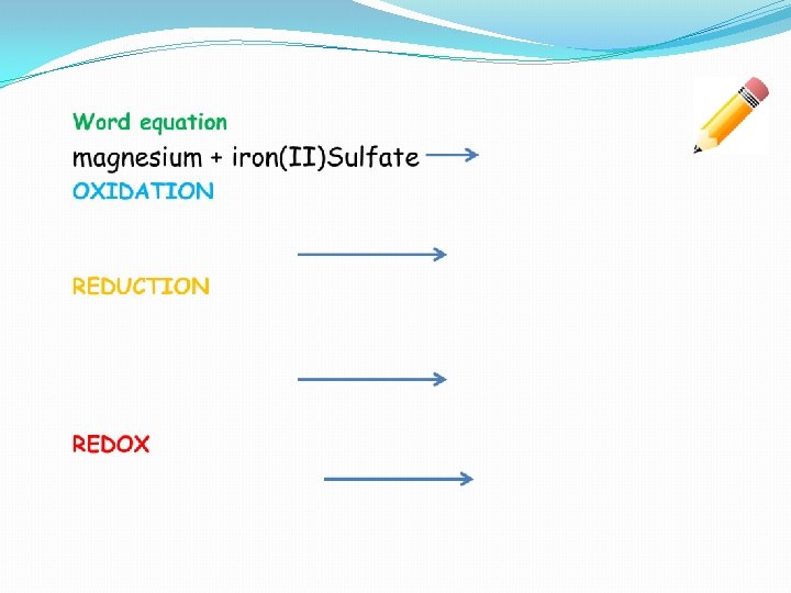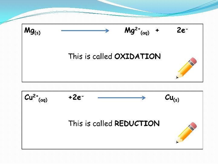 Learning Intention and Success Criteria �Learning Intentions �To learn about the processes of oxidation and reduction �To learn about reduction and oxidation half equations �To learn about redox equations �To learn about displacement reactions �Success Criteria �I can state the processes of reduction and oxidation �I can recognise the processes of reduction and oxidation �I can recall the OIL RIG Memory aid �I can manipulate reduction and oxidation half equations