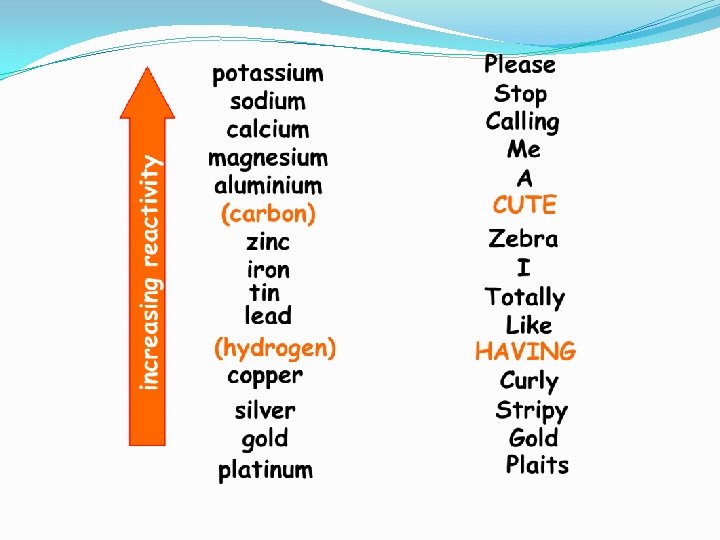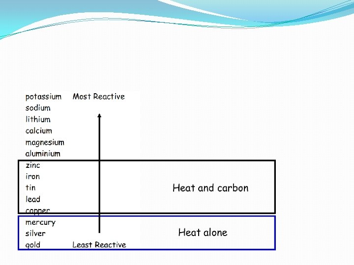 Reactivity Series Based on their reactivity, chemists produced a table of metals as shown: