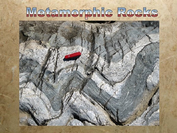 METAMORPHIC ROCK § META = CHANGE § MORPH = FORM § Metamorphism involves the change in form or structure of a rock through heat and pressure.