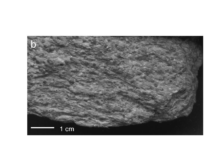• Foliation is a common result, which allows us to estimate the orientation of s 1 Strain ellipsoid · s 1 > s 2 = s 3 foliation and no lineation · s 1 = s 2 > s 3 lineation and no foliation · s 1 > s 2 > s 3 both foliation and lineation Figure 21. 3. Flattening of a ductile homogeneous sphere (a) containing randomly oriented flat disks or flakes. In (b), the matrix flows with progressive flattening, and the flakes are rotated toward parallelism normal to the predominant stress. Winter (2001) An Introduction to Igneous and Metamorphic Petrology. Prentice Hall.
