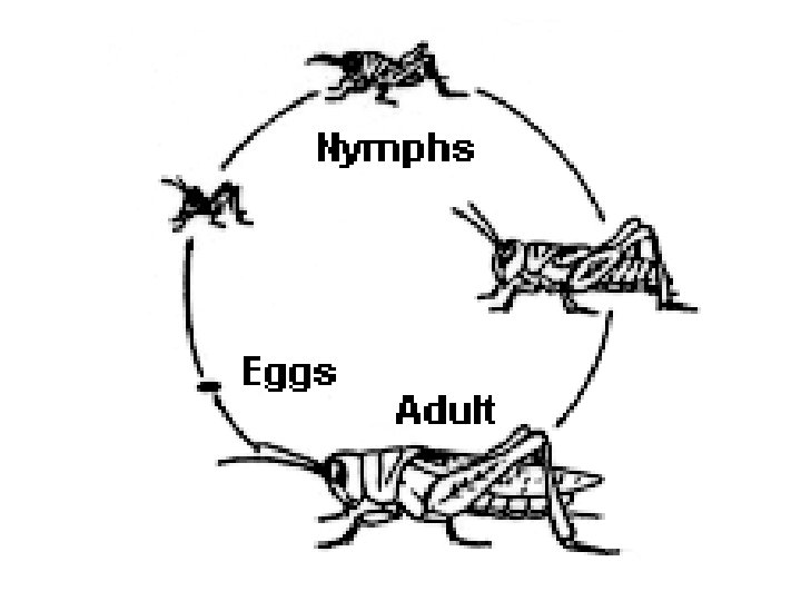 The young ones are called nymphs They are terrestrial They resemble the adults in general body form Their compound eyes and mouth parts are similar to that of adults