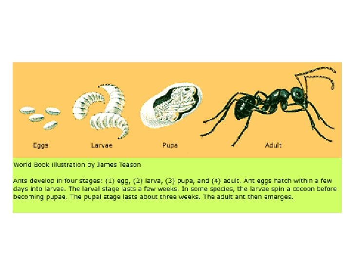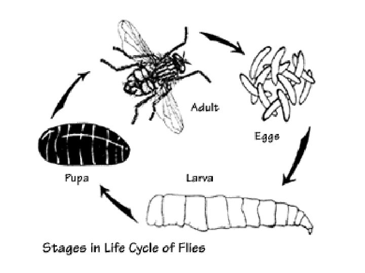 Their mouth parts and food habit differ from adults Wing bud development is internal When the larval growth is completed, it is followed by a period of in activity (prepupa) and transforms into pupa In the pupal stage, the larval tissues disintegrate and adult organs are built up