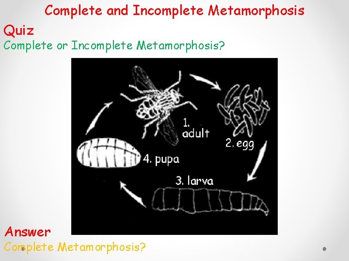 Complete and Incomplete Metamorphosis Quiz Complete or Incomplete Metamorphosis? Answer Complete Metamorphosis?