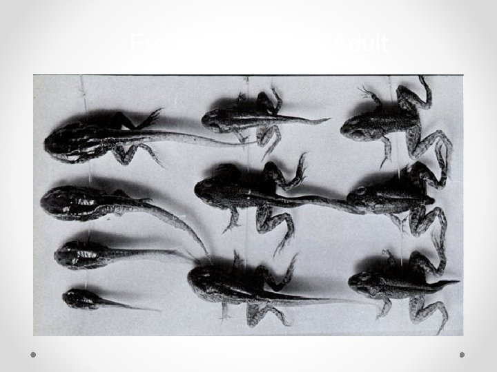 Hormonal Control of Frog Metamorphosis Secretions of two hormones, thyroxine (T 4) and triiodothyronine (T 3) cause metamorphic changes Hormones have different effects depending on location in body Timing of changes regulated by tissue dependent hormone sensitivity Thyroid receptor is transcriptional repressor until thyroid hormone binds causing it to become a transcriptional activator Positive feedback loop is established between thyroid hormone and pituitary gland allowing incremental increases in hormone concentration