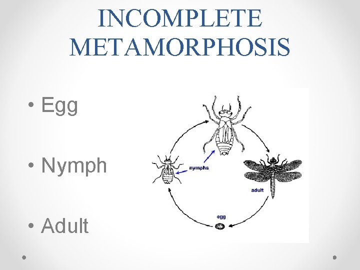 INCOMPLETE METAMORPHOSIS • Egg • Nymph • Adult