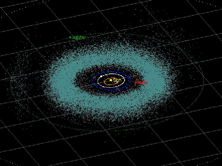 Asteroidengürtel: Grenze: inneren und äußeren Planeten Anzahl: l l Asteroiden entdeckt: 10 000 Asteroiden in Summe geschätzt: 1 Mio. kann vom Planet aus seiner Flugbahn gezogen werden l Von Planeten gefangen Satellit l Mars: Phobos, Deimos Größe: 2. 0 bis 3. 4 AE (1 Astronomische Einheit entspricht 149. 597. 870 km)
