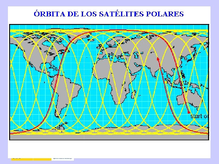 SATÉLITES METEOROLÓGICOS • Geoestacionarios ü Misma zona / No latitudes altas ü 48 imágenes al día • Heliosíncronos o polares ü Van moviéndose con el Sol / Polos ü 2 conjuntos de imágenes al día