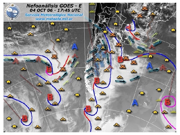 Hemisferio Sur Frentes ocluídos Z Dado que los frentes fríos se desplazan más rápidamente que los frentes calientes, acaban por alcanzarlos y se « ocluyen » . En estas condiciones el sector caliente desaparece progresivamente de la superficie, quedando solamente en altitud. Cuando los frentes se han unido forman un frente ocluido o una oclusión. Las oclusiones pueden ser del tipo frente frío o del tipo frente caliente CALIDO FRESCO FRIO Y FRIO FRESCO X Z (Aire cálido en altura) tipo frente frío CALIDO FRIO FRESCO