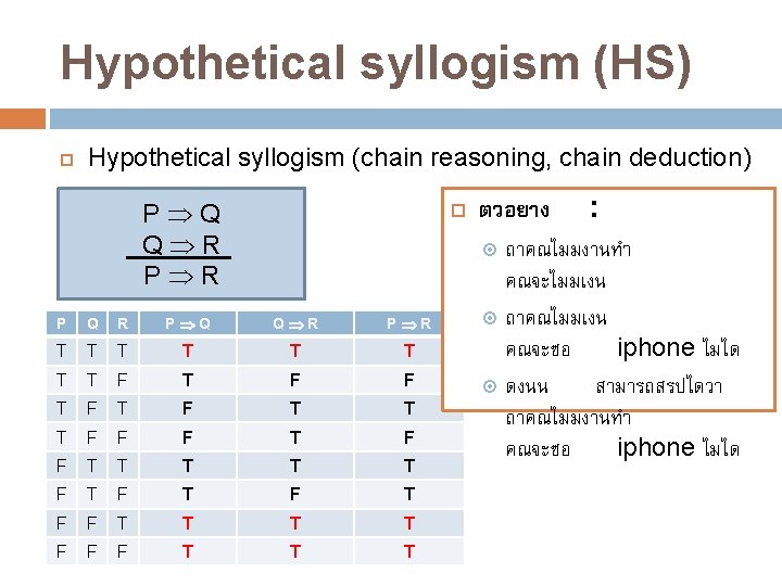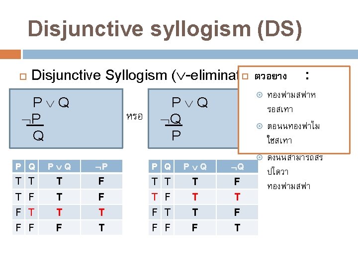 Addition (Add) Addition ( -introduction) P P Q หรอ Q P Q P Q P Q T T T T F T T F F F