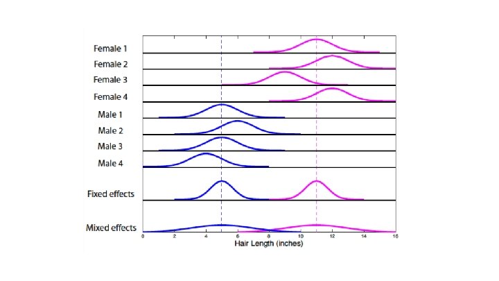 How to carry out random effects analysis? ● Synonymous with ‘mixed effects models’. ● Assumes our sample is a set of individuals taken at random from the population of interest. ● To do this we need to consider the between subject variance AND within subject variance – and estimate the likely variance of the population from which our sample is derived.