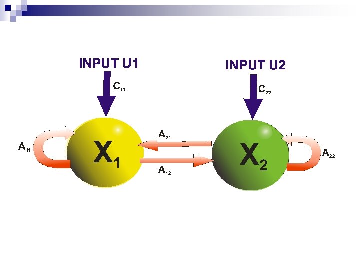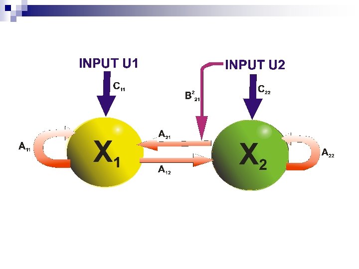 Linear Dynamic Model X 1= A 11 X 1 + A 21 X 2 + C 11 U 1 X 2= A 22 X 2 + A 12 X 1 + C 22 U 2 The Linear Approximation f. L(x, u)=Ax + Cu Intrinsic Connectivity Extrinsic (input) Connectivity