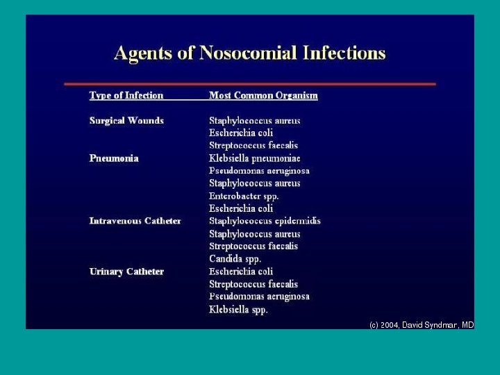 Consequences of Nosocomial Infections • Additional morbidity • Prolonged hospitalization • Long-term physical, developmental and neurological sequelae • Increased cost of hospitalization • Death