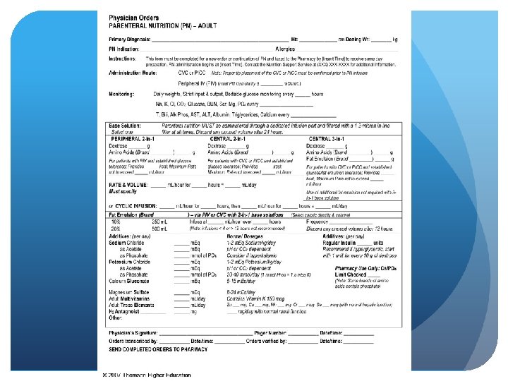 Parenteral Nutrition Determining the nutrition prescription – clinical application - sample form