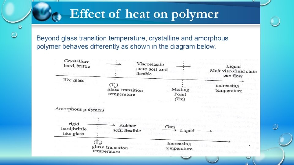 METHODS OF POLYMERIZATION, CHARACTERIZATION BY TGA, DTA, MOLECULAR WEIGHT AND ITS DETERMINATION, AMORPHOUS AND CRYSTALLINE POLYMERS, BIOPOLYMERS, STRUCTURE -PROPERTY RELATION IN POLYMERS.
