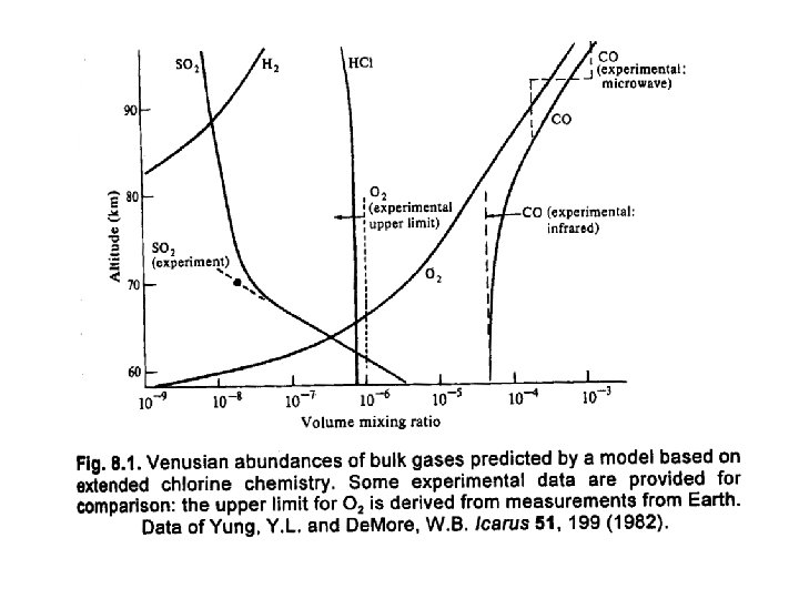 Stratospheric chemistry • Three major questions about the chemistry of Venus: (1) What controls the extent of CO 2 photolysis – there ought to be much less CO 2 using conventional chemistry (2) What part does SO 2 play. (3) What is the abundance of H 2