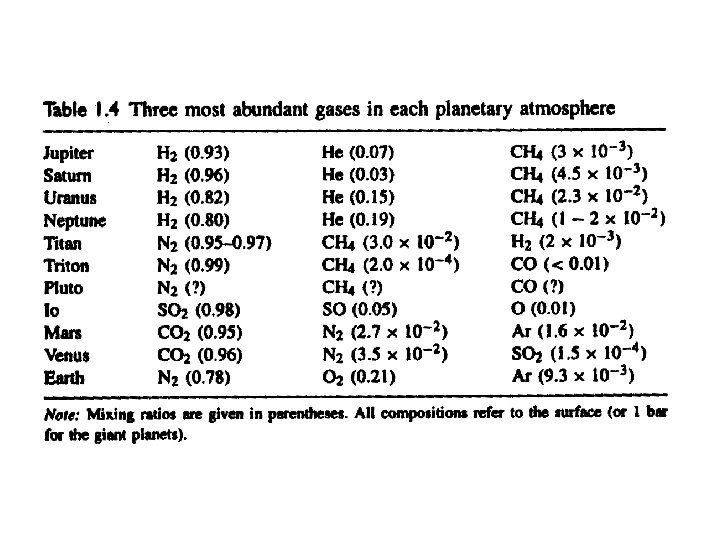 Planetary Atmospheres • The existence of an atmosphere depends on three factors: (1) How close the planet is to the sun – basically the closer to the planet the higher the amount of heating (2) The mass of the planet. The higher the mass the larger the escape velocity has to be. (3) The strength of the magnetic field. The solar wind scows the surface of the planet unless it is diverted by a strong magnetic field, e. g. consider the Earth.