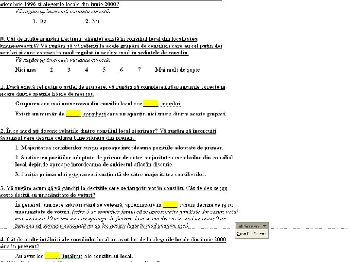 CONSIDERATII GENERALE Allow a “Don't Know” or “Not Applicable” response to all questions, except to those in which you are certain that all respondents will have a clear answer. Sometimes “Don't Know” or “Not Applicable” will really represent some respondents' most honest answers to some of your ques tions. Respondents who feel they are being coerced into giving an answer they do not want to give often do not complete the questionnaire. For the same reason, include “Other” or “None” whenever either of these are a logically possible answer. When the answer choices are a list of possible opinions, preferences or behaviors you should usually allow these answers. You may want to combine two or more of them into one choice, if you have no interest in distinguishing between them. You will rarely want to include “Don't Know, ” “Not Applicable, ” “Other” or “None” in a list of choices being read over the telephone or in person, but you should allow the interviewer the ability to accept them when given by respondents.